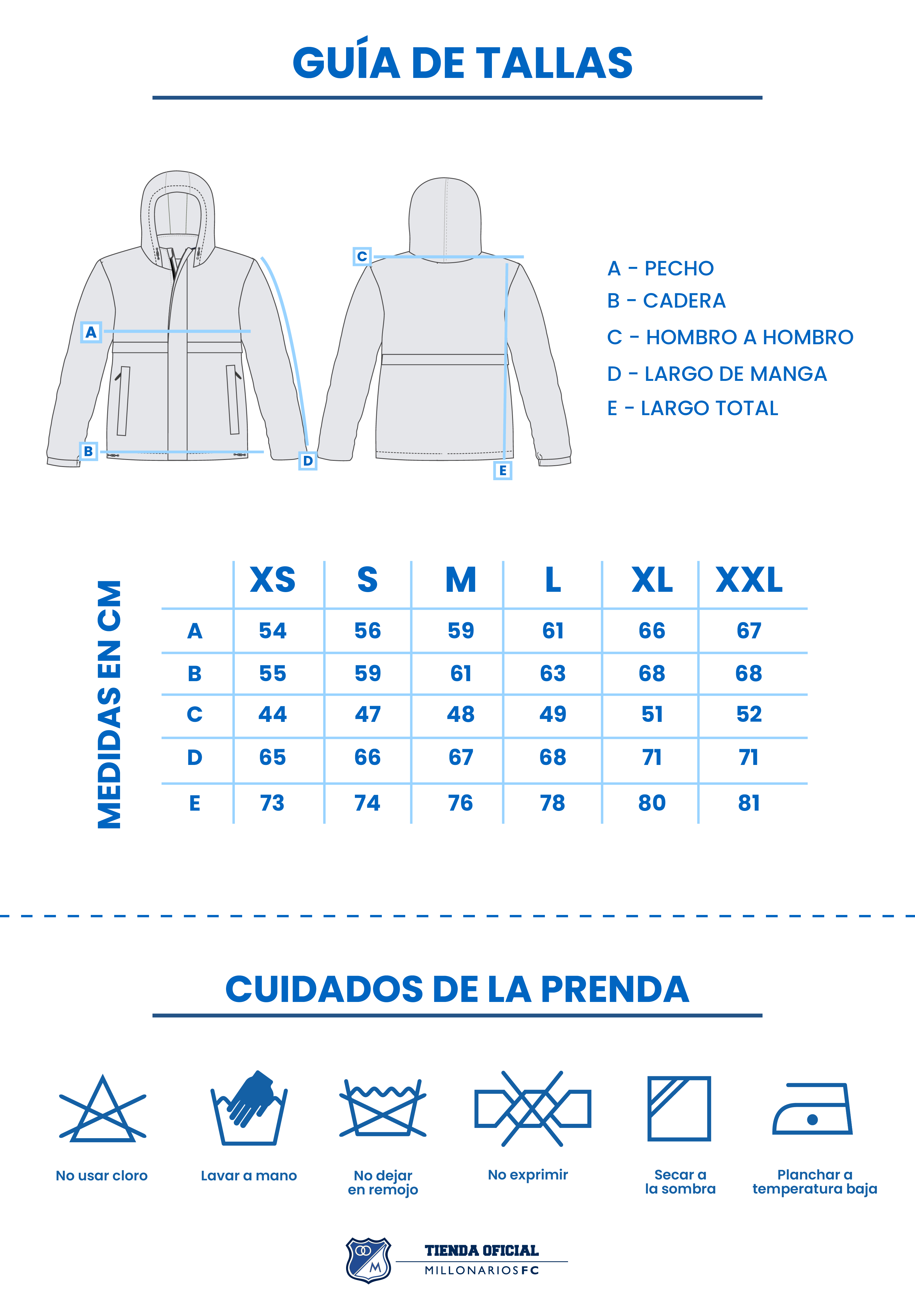 - Detalles distintivos: Placa Metaliza con escudo e inscripción Millonarios Fc. Bolsillos laterales