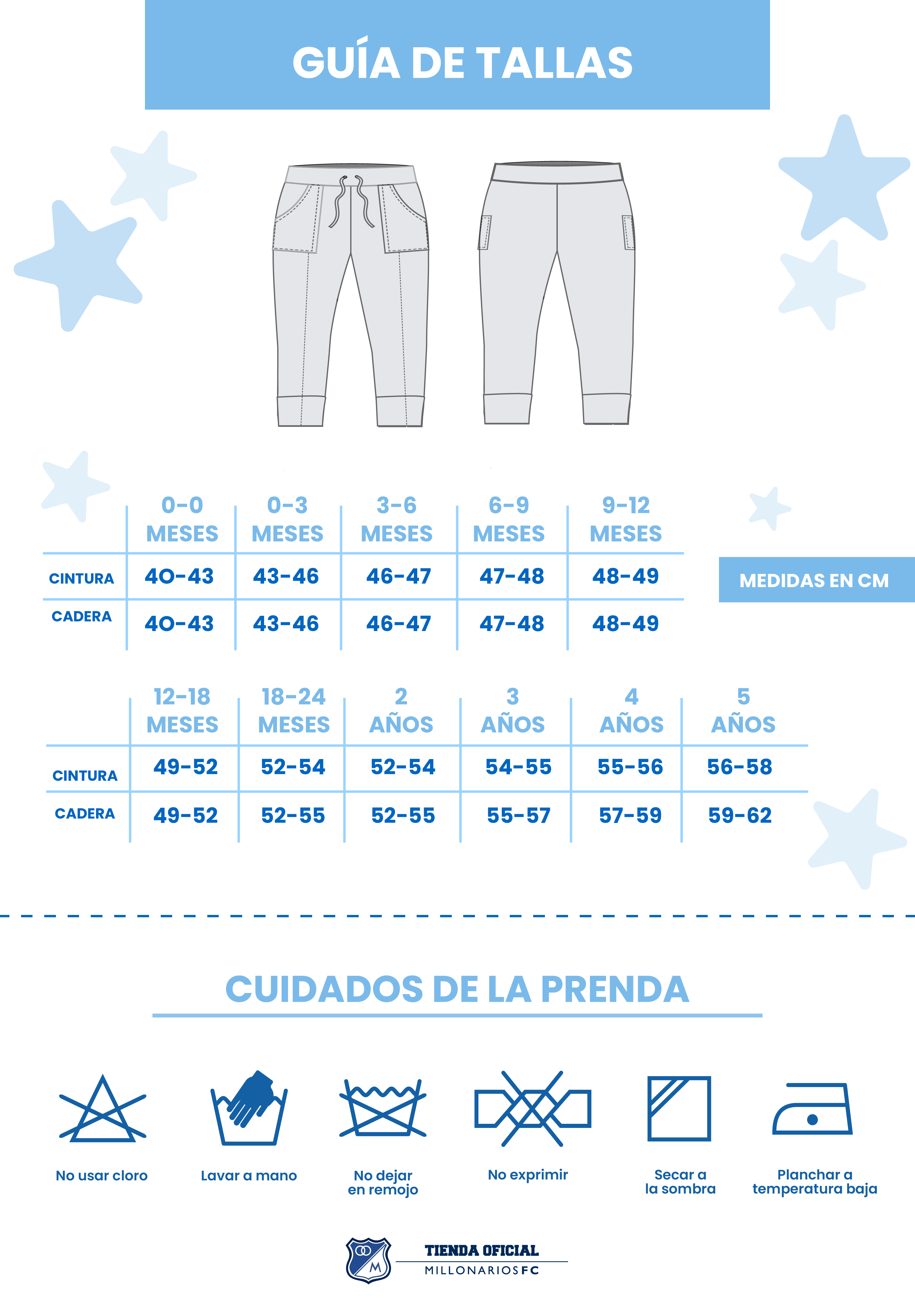 Consulte Guía de tallas y cuidado de la prenda