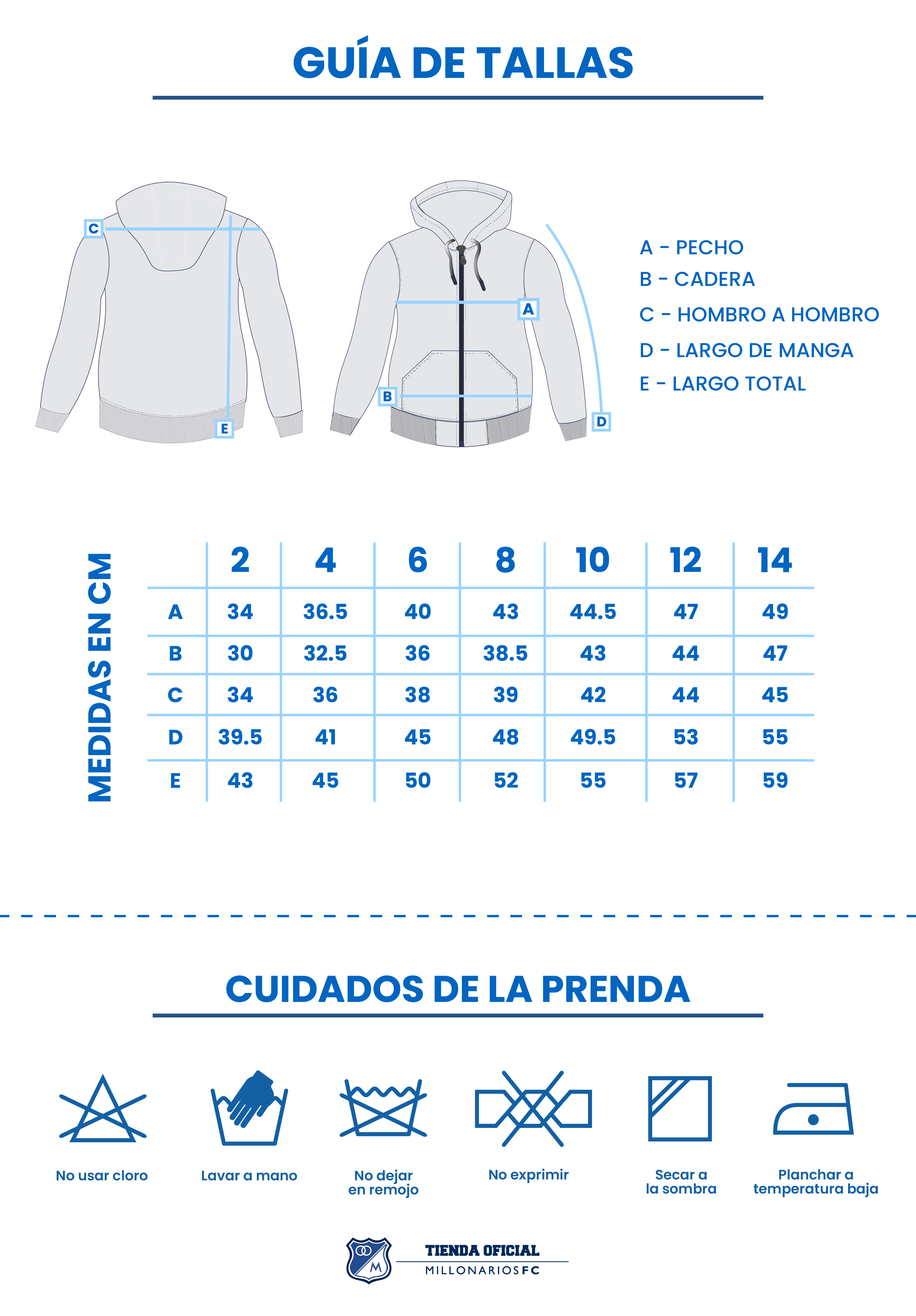 - Detalles distintivos: Placa Metaliza con escudo e inscripción Millonarios Fc. Botones metálicos con inscripción Millonarios Fc. Bolsillos laterales